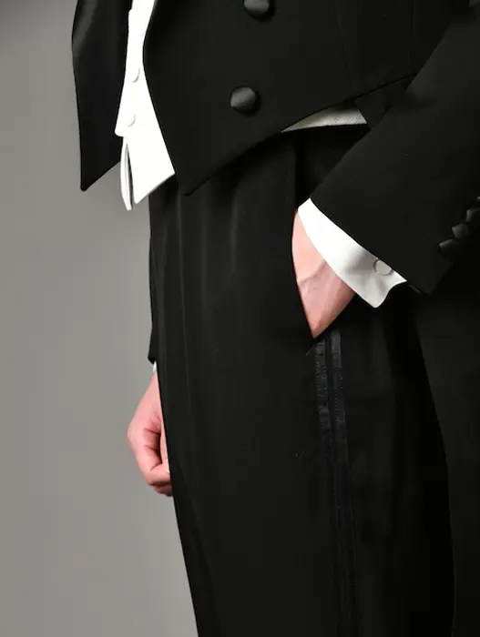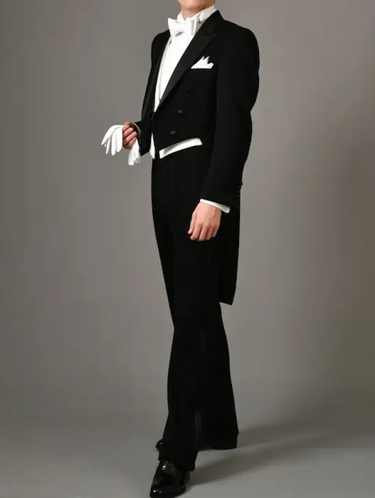 ・燕尾服(上下) ・側章付パンツ ・白ベスト ・白蝶ネクタイ ・カフス ・サスペンダー ・チーフ ・白手袋